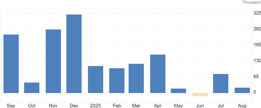 To be clear – the labor market isn’t necessarily weak, as unemployment remains at a healthy 4.3%. But recent data suggests a trend of weakening. Hiring activity has notably slowed with average hourly earnings growth decelerating and a modest rise in unemployment. The latest data from August continued this trend with only a 22,000 increase in job adds, following July’s upwardly revised 79,000.